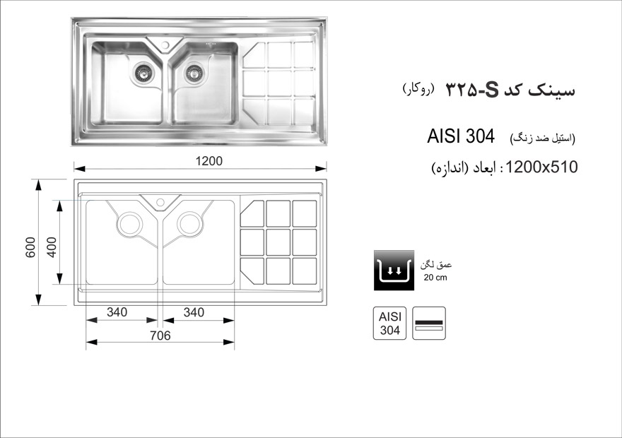 سینک روکار کد 325s