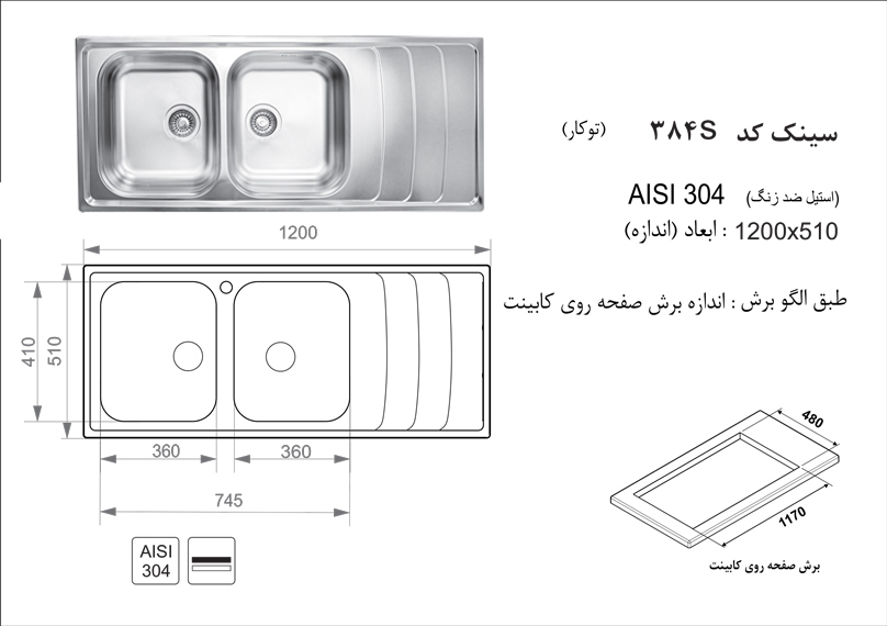 سینک توکار کد 384S